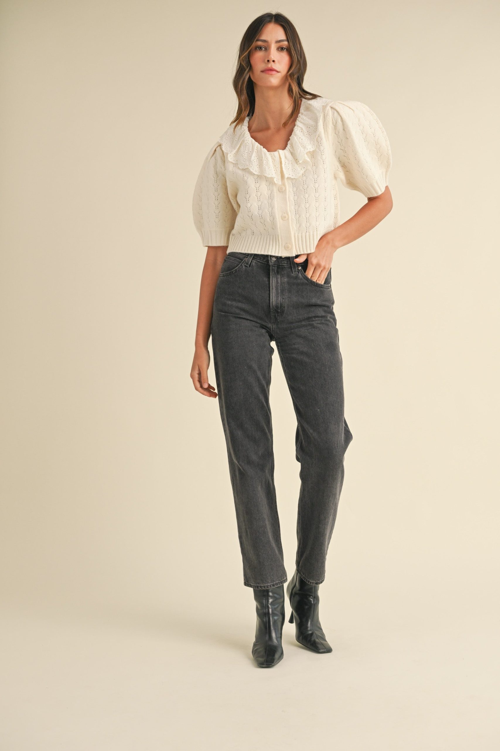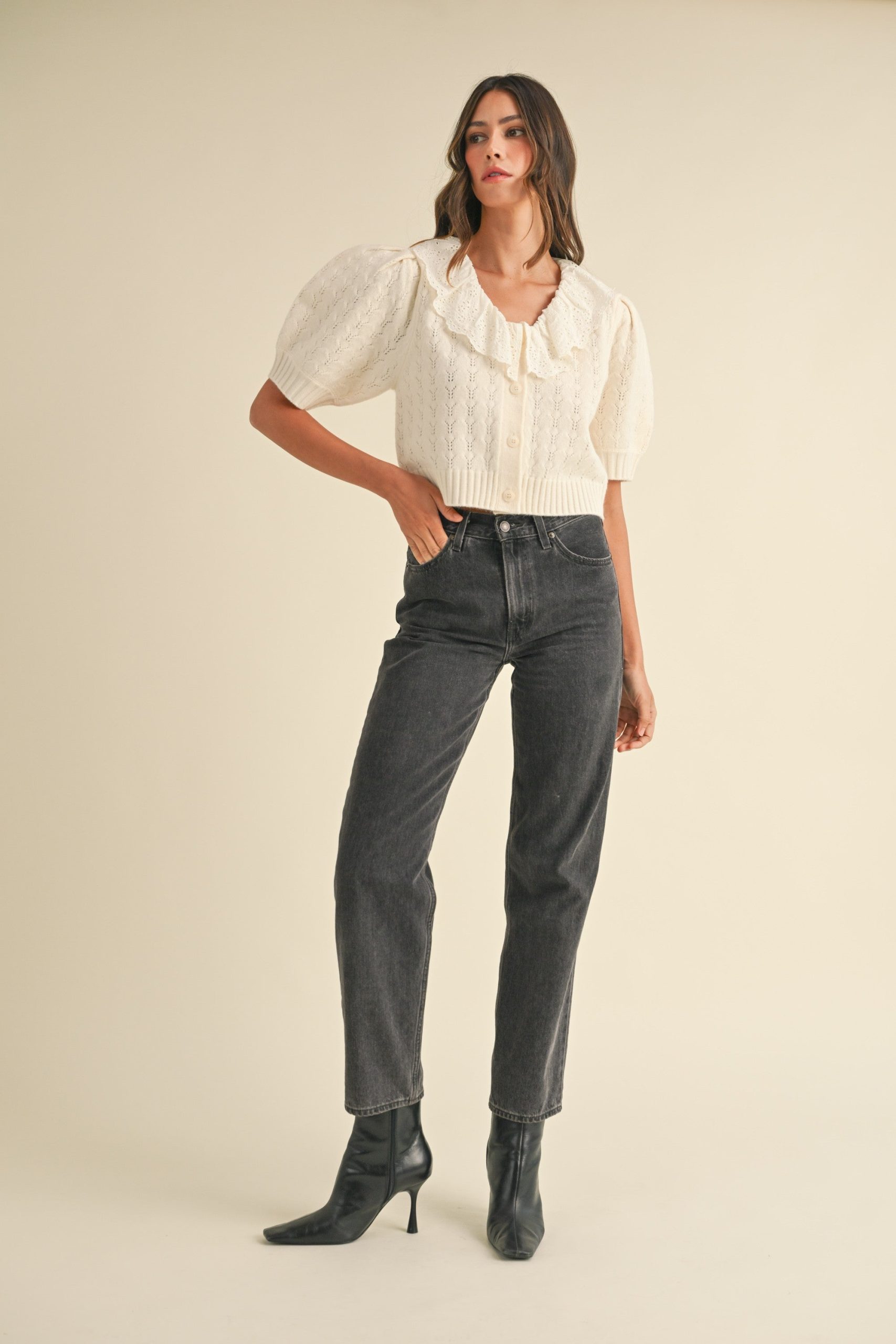 Be the first to review “Openwork-knit Ruffled-lace Collar Cropped Cardigan”