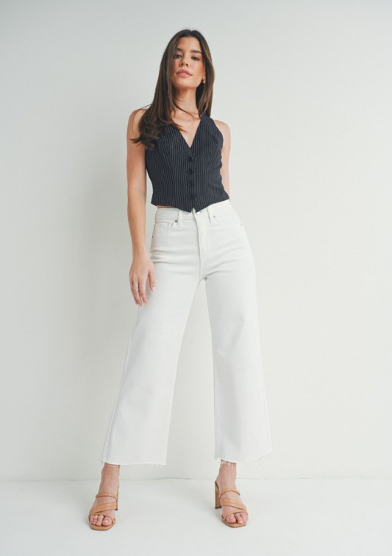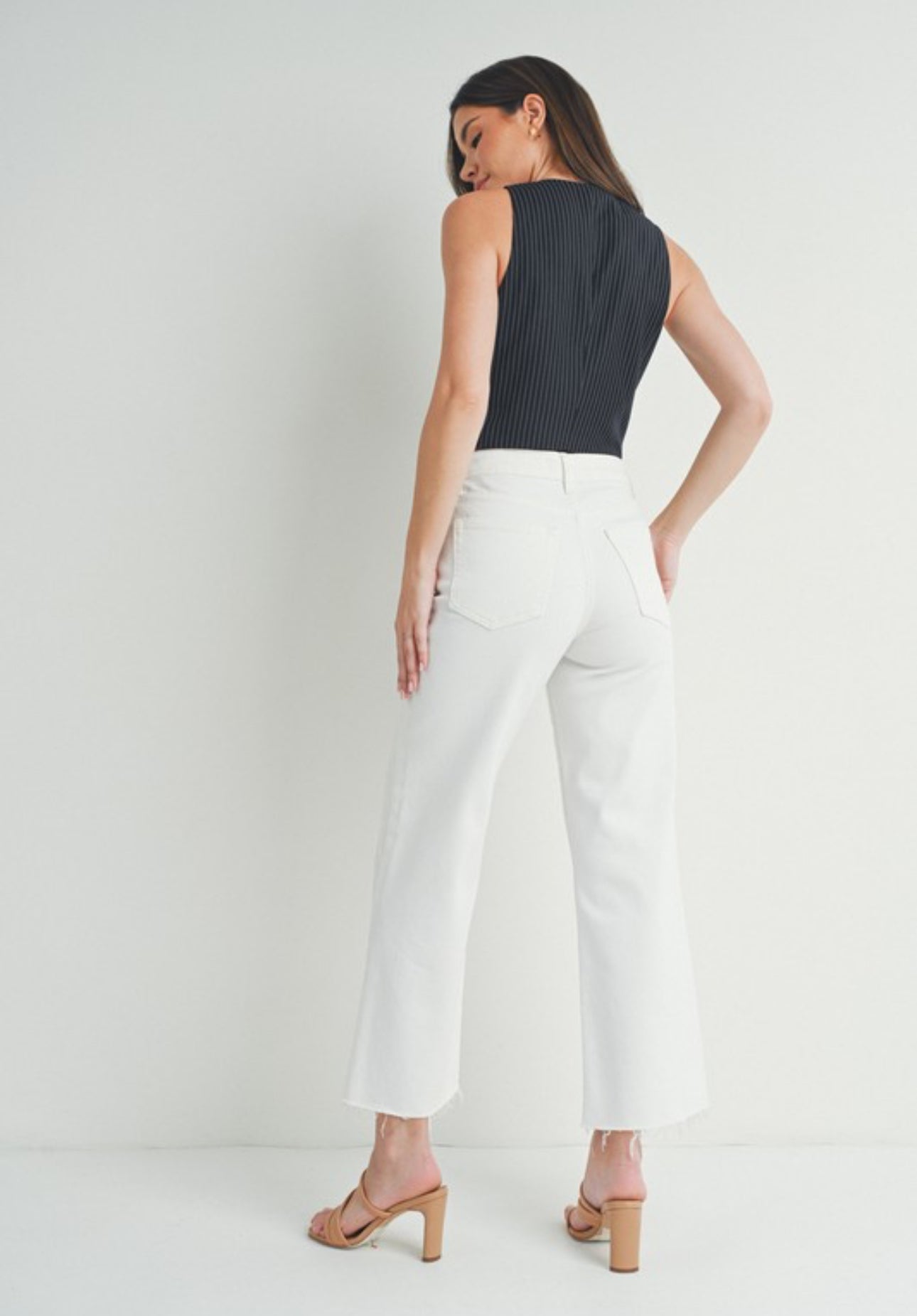 These high – rise wide – leg jeans are a stylish and comfortable addition to any wardrobe. The slim fit through the hips and thighs gradually transitions into a wide leg, creating a modern and relaxed look. The bright white color and frayed hem add a trendy touch, making them perfect for various occasions.